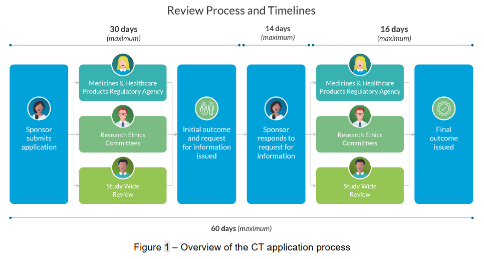Medicines regulators recognise the need for reliability and consistency in the assessment timelines for Clinical Trial Authorisation (CTA) to facilitate innovation. Last year, more than 5,000 applications were assessed by the UK’s Medicines and Healthcare products Regulatory Agency (MHRA) Clinical Trials Unit. The work required to assess these applications is very time-consuming, and with the rise in adaptive and complex innovative clinical trial design, assessment times are set to increase further. Typically, assessment involves extensive re-reading of complex documentation to extract key information, reviewing responses to requests for information (RFIs), and cross-checking statements and justifications by subject matter experts. This process must occur within tight timescales, involving multiple organisations and stakeholders, as shown in Figure 1 below.