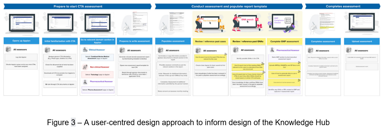 This approach rapidly developed an evidence-based view of how AI could be deployed responsibly to meet the needs of assessors and MHRA’s wider business requirements. At critical milestones, key decisions on which potential solutions to prioritise were based on targeted proof-of-value exercises and insights from user research, maximising the return on investment that could be delivered within the limited time and funding available, resulting in the successful design, development and deployment of two novel AI-enabled tools to support the CIT division.