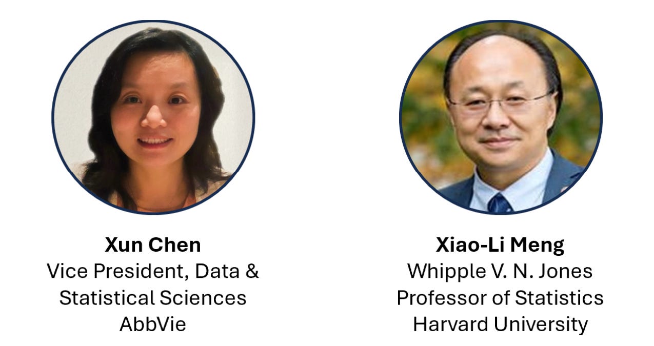 Xun Chen is the Vice President and a Global Head of Data and Statistical Sciences at Abbvie. In her current role at Abbvie, Xun Chen leads the statistical strategy and execution across all clinical development programs, supporting a diverse portfolio of successful therapies in oncology, immunology, rare diseases, diabetes, and cardiovascular disease.